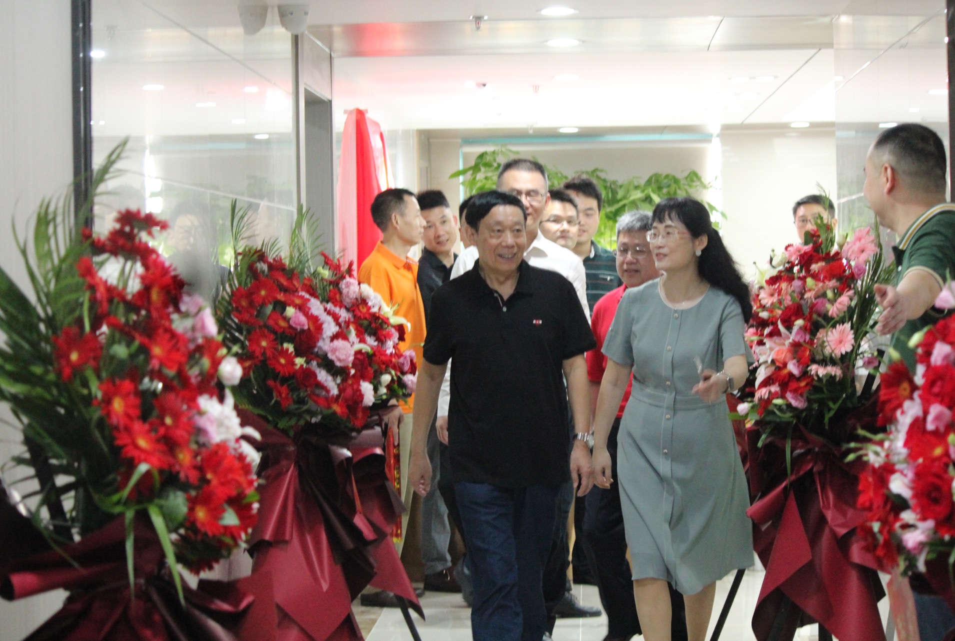 十一時十八分,伍總和譚副主席、謝校長、談總、周總一起,徐徐揭下了公司牌匾上的紅綢。
