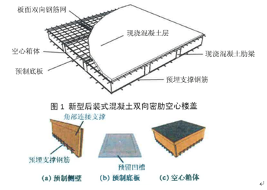 主要有現(xiàn)澆頂板、密肋和空心箱體組成,不僅具有傳統(tǒng)雙向密肋樓蓋和空心樓蓋的優(yōu)點,而且省去了制作難、運輸難及造價高的內(nèi)模,材料更省、傳力更明確,具有空心率大、承載力高、整體性及抗裂防滲性能好,施工方便、縮短工期等諸多優(yōu)點。