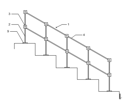 通過對傳統(tǒng)欄桿進行改進,將縱橫向欄桿通過調(diào)節(jié)件進行位置和角度的連接,可以使欄桿適應(yīng)不同尺寸空間、不同安裝夾角的安裝環(huán)境。