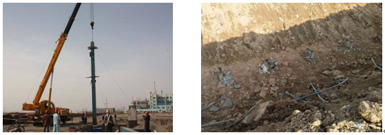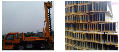 工字鋼吊裝               澆筑完成的工字鋼微型樁