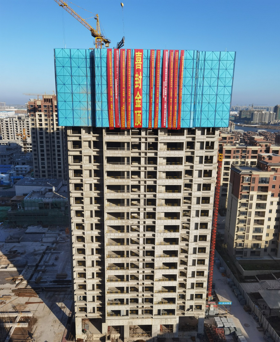 在青島市聯(lián)順地產(chǎn)有限公司領(lǐng)導(dǎo)、監(jiān)理單位代表、項目部負(fù)責(zé)人以及現(xiàn)場施工人員的見證下,3#封頂慶典隆重舉行。
