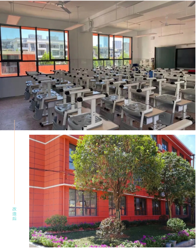 此次維修改造現(xiàn)場(chǎng)班組戰(zhàn)高溫、斗酷暑,歷時(shí)40余天,順利完成建設(shè)局、教育局布置的任務(wù),使得碧湘街小學(xué)舊貌換新顏。期間8月初面對(duì)突然其來(lái)的疫情,也是應(yīng)對(duì)有方案,有條不紊安排防疫、抗疫,使得施工進(jìn)度不耽誤,順利在9月開(kāi)學(xué)前進(jìn)行交付使用!