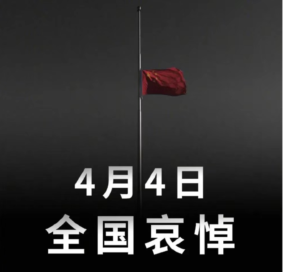 為表達(dá)全國各族人民對(duì)抗擊新冠肺炎疫情斗爭(zhēng)犧牲烈士和逝世同胞的深切哀悼,國務(wù)院于2020年4月3日發(fā)布公告,決定2020年4月4日舉行全國性哀悼活動(dòng)。在此期間,全國和駐外使領(lǐng)館下半旗志哀,全國停止公共娛樂活動(dòng)。4月4日10時(shí)起,全國人民默哀3分鐘,汽車、火車、艦船鳴笛,防空警報(bào)鳴響。